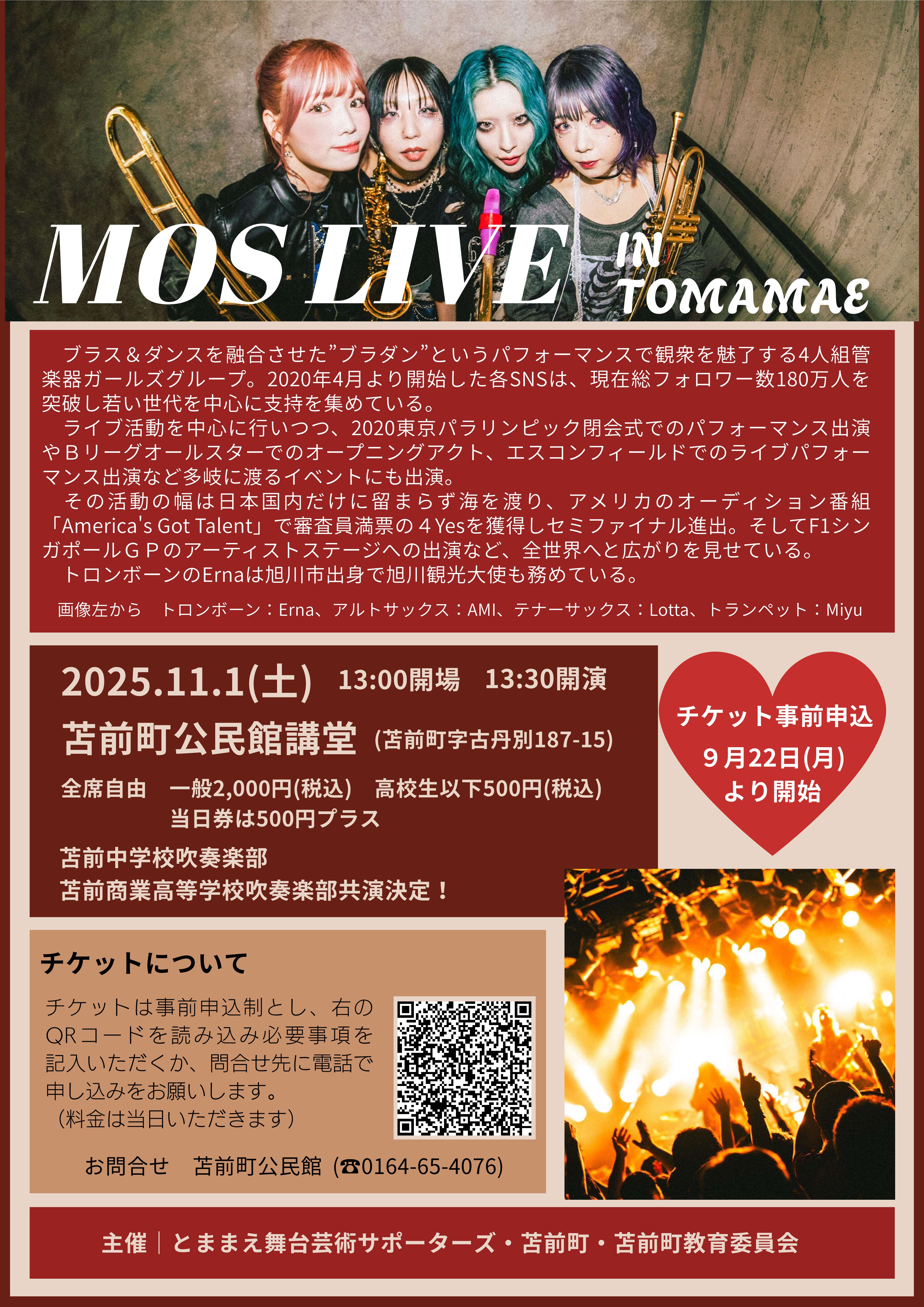 ブラダンの第一人者「MOS LIVE in TOMAMAE」事前申込受付中!